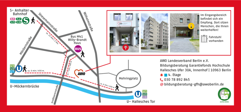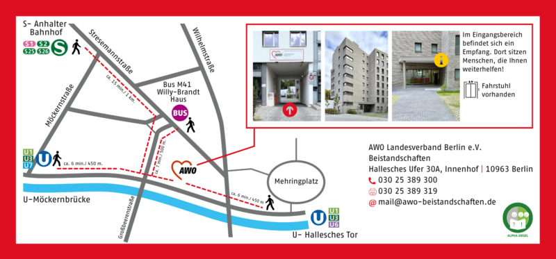 Einrichtungen der AWO in Berlin mit Alpha-Siegel: