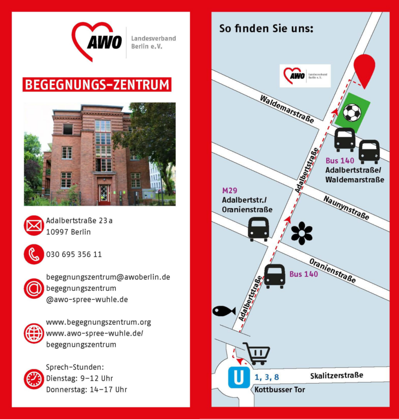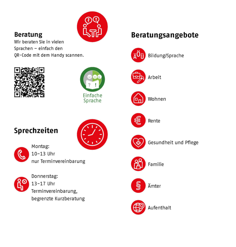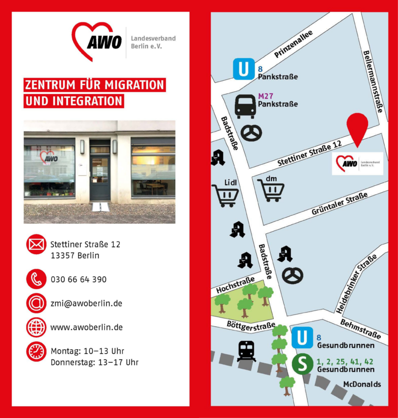 Hier finden Sie Informationen zu dem Beratungs-Zentrum der AWO. In der Beratungs-Stelle gibt es verschiedene Beratungs-Angebote für Geflüchtete und Migranten und Migrantinnen, die neu in Deutschland sind oder schon länger in Deutschland leben. Wir sprechen mehrere Sprachen.