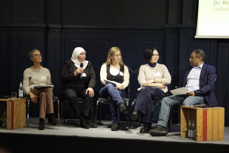 Einen fachlichen Impuls gab Prof. Dr. Dr. Hürrem Tezcan Güntekin. In anschließenden Praxisdialogen diskutierten die Teilnehmenden mit Jieun Park (GePGeMi e. V.), Nazife Sari (Interkulturelle Brückenbauer*innen in der Pflege), Dr. Petra Narimani (International School of Nursing Berlin) und Dr. Rihab Bouchnak (AWO Şifahane) Erfahrungen und Handlungsbedarfe aus unterschiedlichen Perspektiven.
